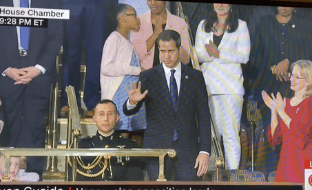 即使局面已經一片混亂,特朗普政府仍然沒有放棄瓜伊多。2020年2月的國情諮文,瓜伊多成為了座上賓。