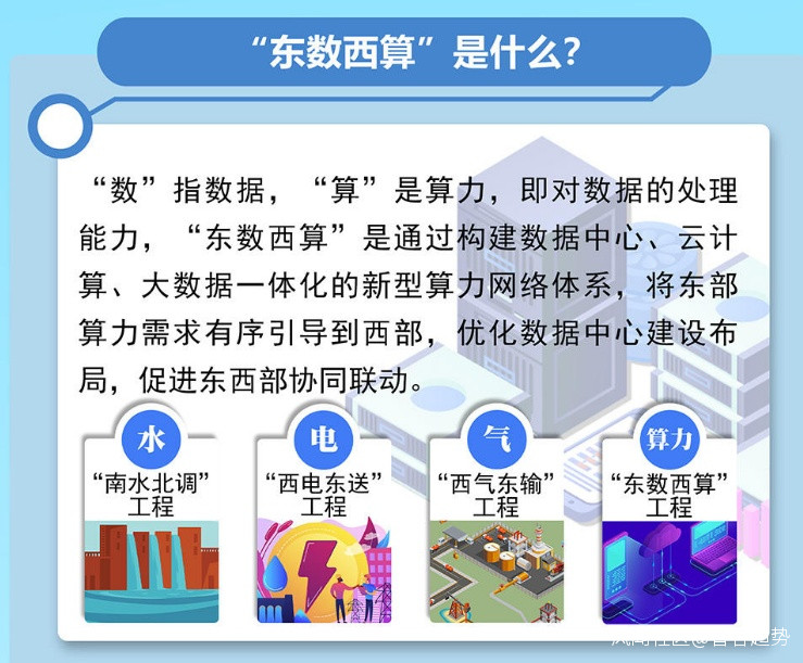 2月17日,發改委聯合多部門重磅宣佈要在全國範圍內建設8個國家級數據算力樞紐和10個數據中心集羣,簡稱“東數西算”。