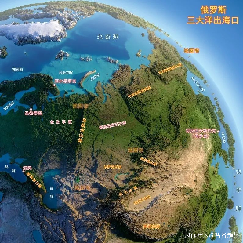 俄羅斯的沿海要麼是北冰洋,要麼被西邊北約成員國鎖死,在東邊千辛萬苦得到海參崴,依然是偏離全球航運主航道的凍港。