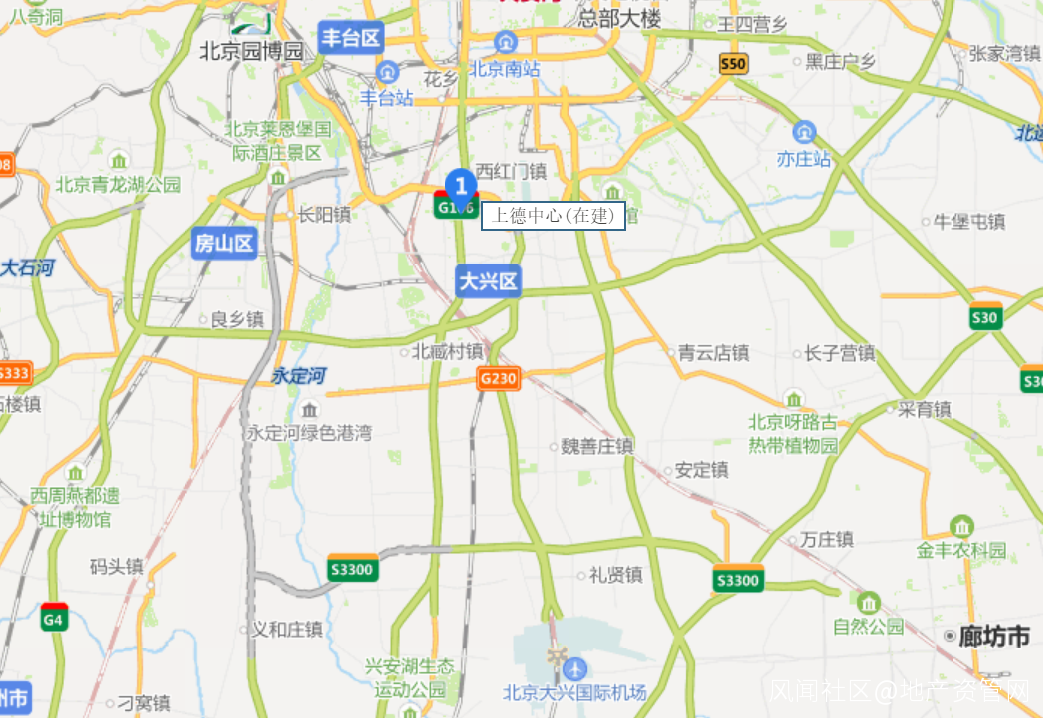 **從區域上看,**上德中心位於大興區國家新媒體產業基地,距離地鐵4號線高米店南站1公里,緊鄰京開高速,30分鐘到達大興國際機場,20分鐘到達北京南站。
