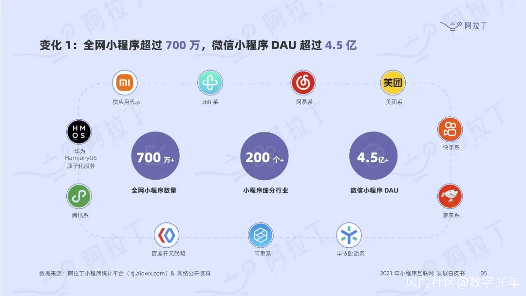據阿拉丁研究院《2021年度小程序互聯網發展白皮書》公佈的數據顯示,2021年,全網小程序數量已超700萬。
