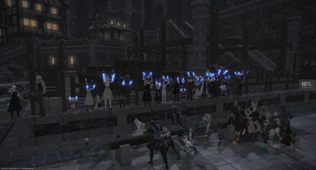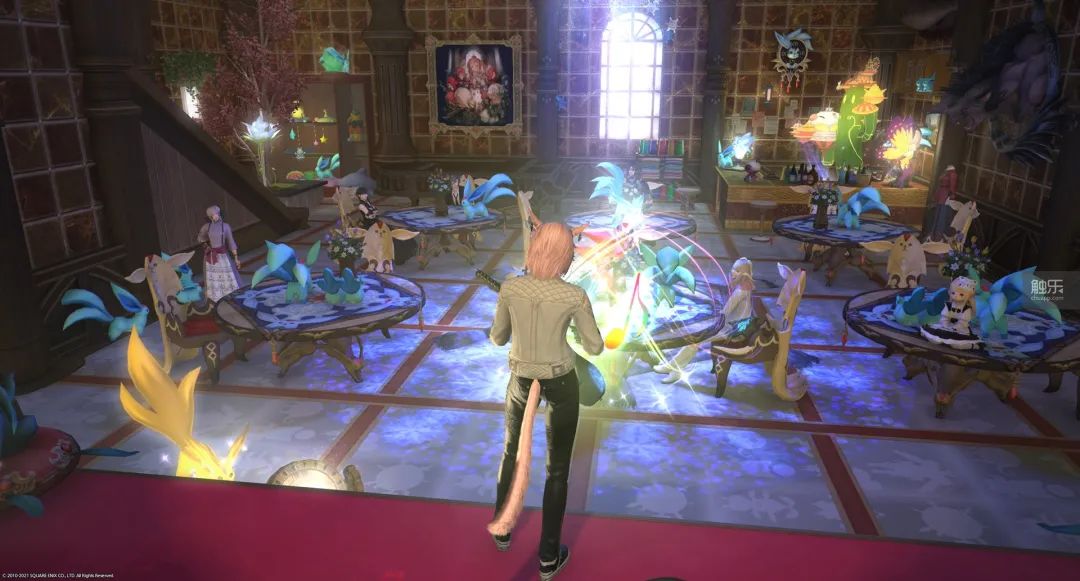 在副本戰鬥之外,5.0時代的生產採集活動“重建伊修加德”也成為我和其他冒險者們建立紐帶的重要橋樑。當整個服務器的玩家聚集在一起,為了重建活動在天穹街一會兒把物資搬來搬去,一會兒拿起錘子叮叮噹噹敲個不停,旁白中還有其他玩家舉起熒光棒加油的時候,我感覺有一種莫名的温暖湧過心頭。或許這正是MMORPG的魅力所在。而重建中獲得的大量寶石獸主題傢俱,最終也成了我開一家寶石獸酒館作為RP店的契機。