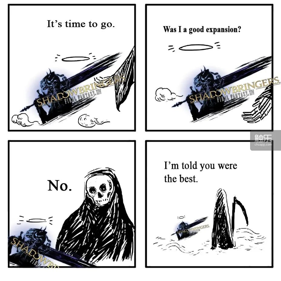 正如同愛梅特賽爾克的那句台詞一樣,我相信我和其他玩家一樣,都會一直記得《暗影之逆焰》這個優秀的版本。明天,國服《最終幻想14》就將進入6.0《曉月之終途》的時代,有人在懷念龍騎士的龍腸和占星術士的黑夜學派,有人對能大筆賺錢的巨匠藥水理符任務依依不捨,而我只是不想忘記和朋友們一同度過的最美好時光。再見了,《暗影之逆焰》。或許我還會時不時來一次雷克蘭德,再到水晶都坐一會兒,聽聽那段熟悉的音樂,回憶起自己作為暗之戰士冒險的那段旅程。