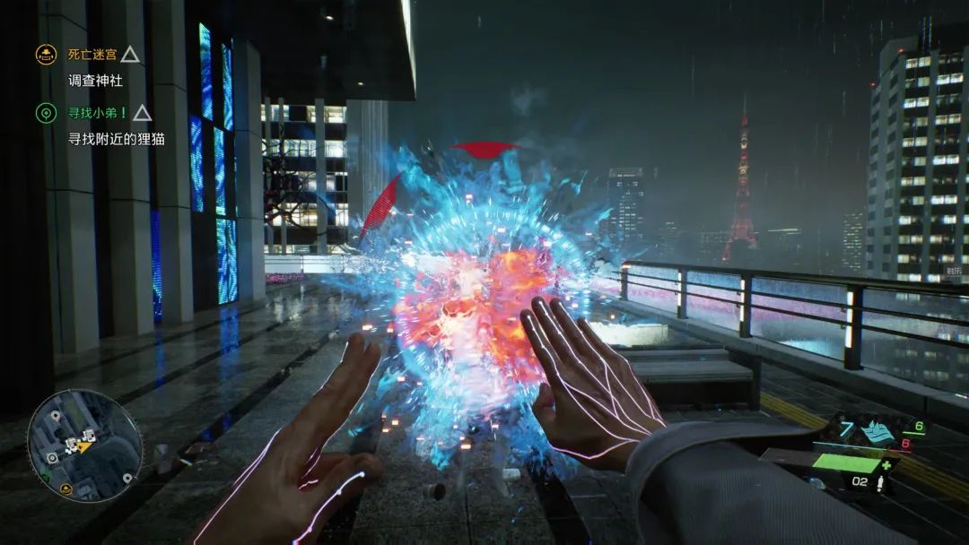 從這個角度看,《幽靈線:東京》也讓我嗅到了同樣的味道。儘管陰陽術、日式鬼怪、都市傳説、恐怖氛圍對於玩家都不陌生,甚至過於熟悉,但把它們加入開放世界之中,再配合第一人稱“施法”的動作(這些動作大多數都針對PS5手柄做了適配,手感不錯)和現代東京自帶的“賽博光污染”風格,仍能讓玩家產生相當強烈的代入感和新鮮感。