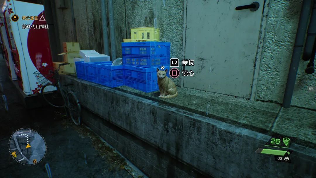 諸多探索要素中,最能體現“摸魚”精神的當屬地圖上的貓貓狗狗了。長久以來,遊戲玩家中貓狗兩派的愛好者總在明裏暗裏有着一些派系之爭,而《幽靈線:東京》在這方面也沒能做到一碗水端平。雖然主人公可以使用“讀心”能力和貓狗交流,還可以撫摸它們,但只能餵狗吃狗糧,相應地,狗會給主人公一定回饋,重要物品、地藏,至少也是一些錢——如果你在《對馬島之魂》裏經常和狐狸打交道,那麼《幽靈線:東京》裏的小狗也會給你熟悉的感覺。