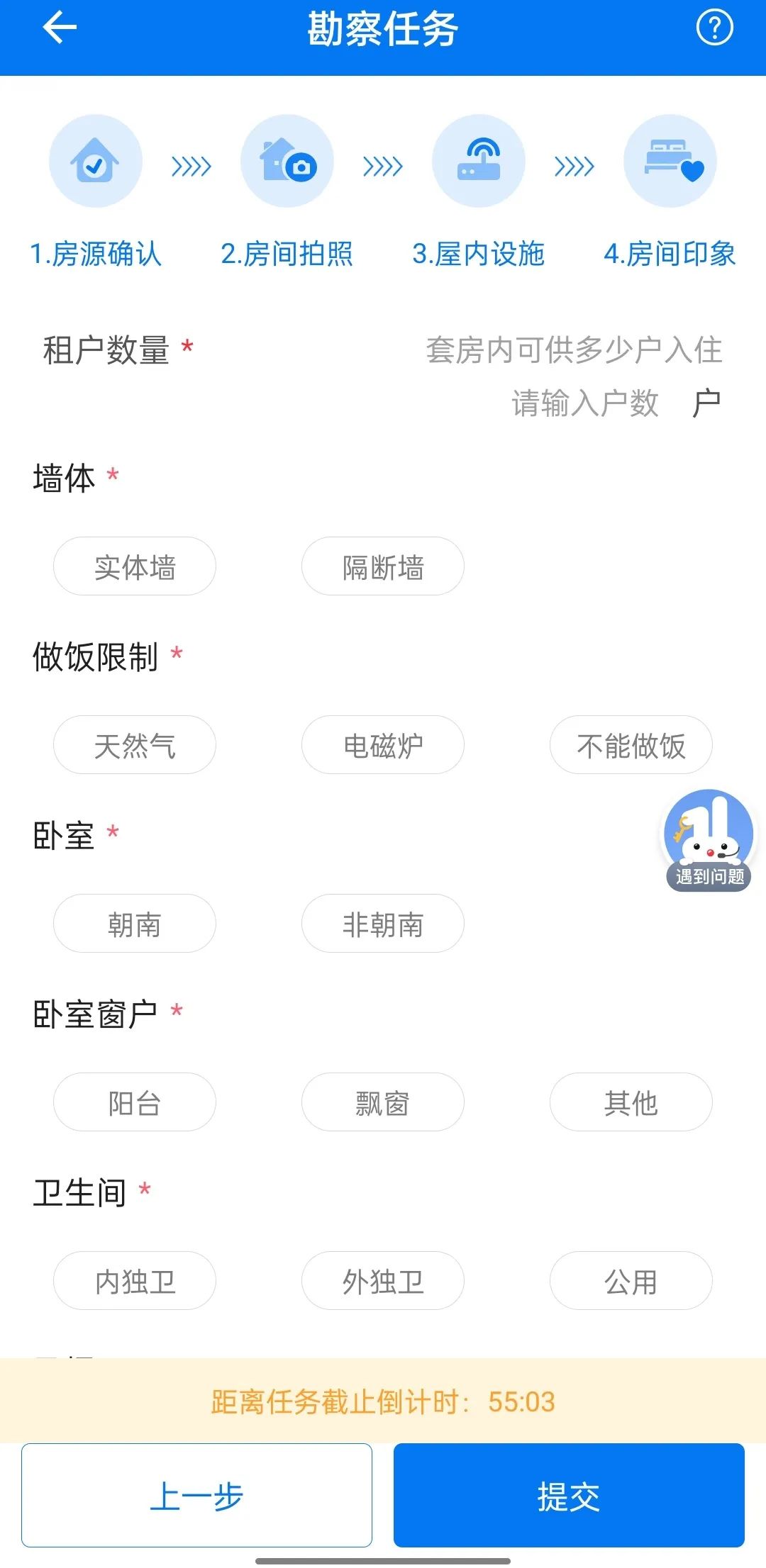 在“勘察任務”的信息輸入界面,除去房間設施等必要信息,儘管巴樂兔設有“居住户數”及“是否隔斷牆”等選項,卻並未提及“是否羣租房”,勘察任務會註明是否“二房東房源”,卻在用户使用的巴樂兔前端App完全隱藏該信息。