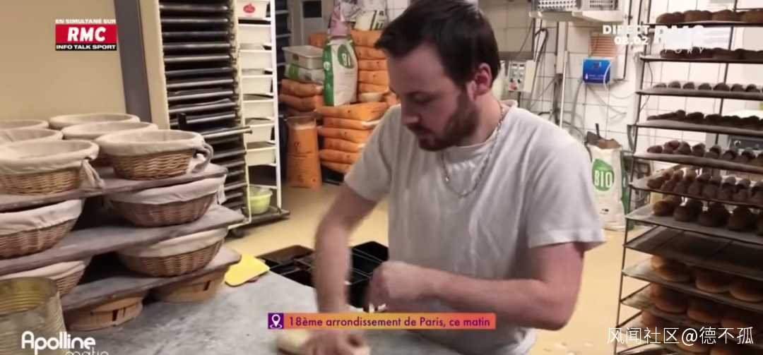 ▲ 14日,法國RMC新聞台記者採訪了巴黎18區一家麪包房麪包師傅,他感嘆道:“戴着口罩工作又悶又熱,很不舒服。現在,終於解放了。”(RMC新聞台報道截圖)