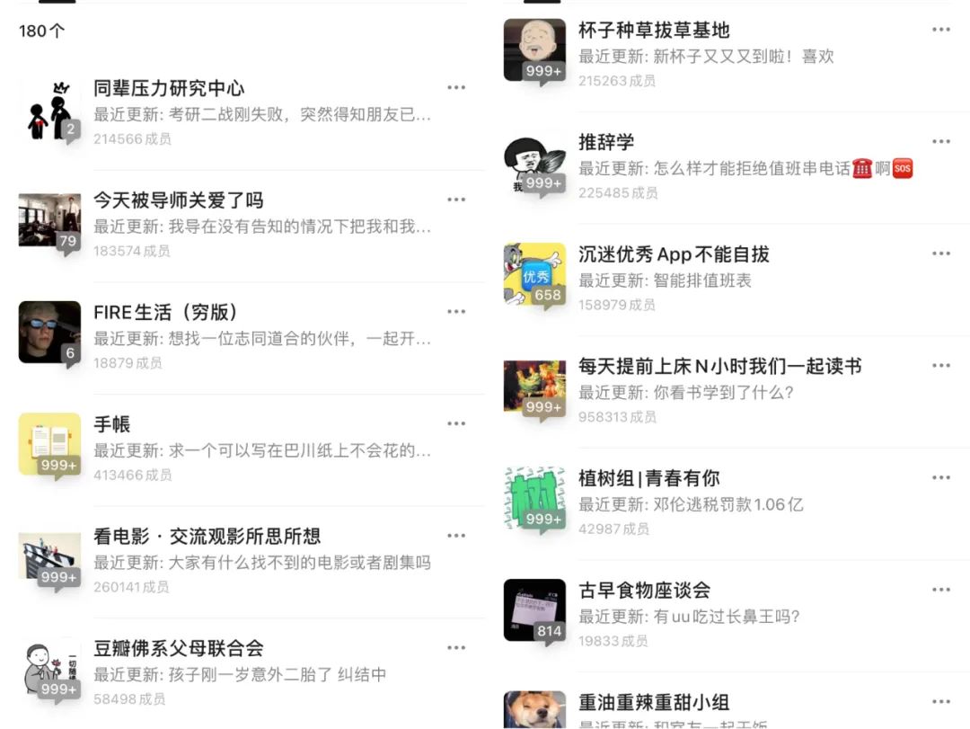 從傢俱裝修到旅遊攻略,亦或者是一些小眾愛好,阿桃關注了近200個小組,話題五花八門,但甭管多冷門,都能找到興趣相投的人。