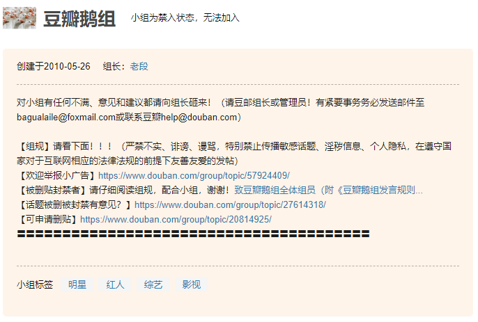 於是,這樣一個帶有火藥味的小組漸漸成為了外界對豆瓣的唯一印象,從組內對明星和娛樂圈真真假假的爆料以及後續的爭吵謾罵也為豆瓣在今天頻繁被監管埋下了伏筆。