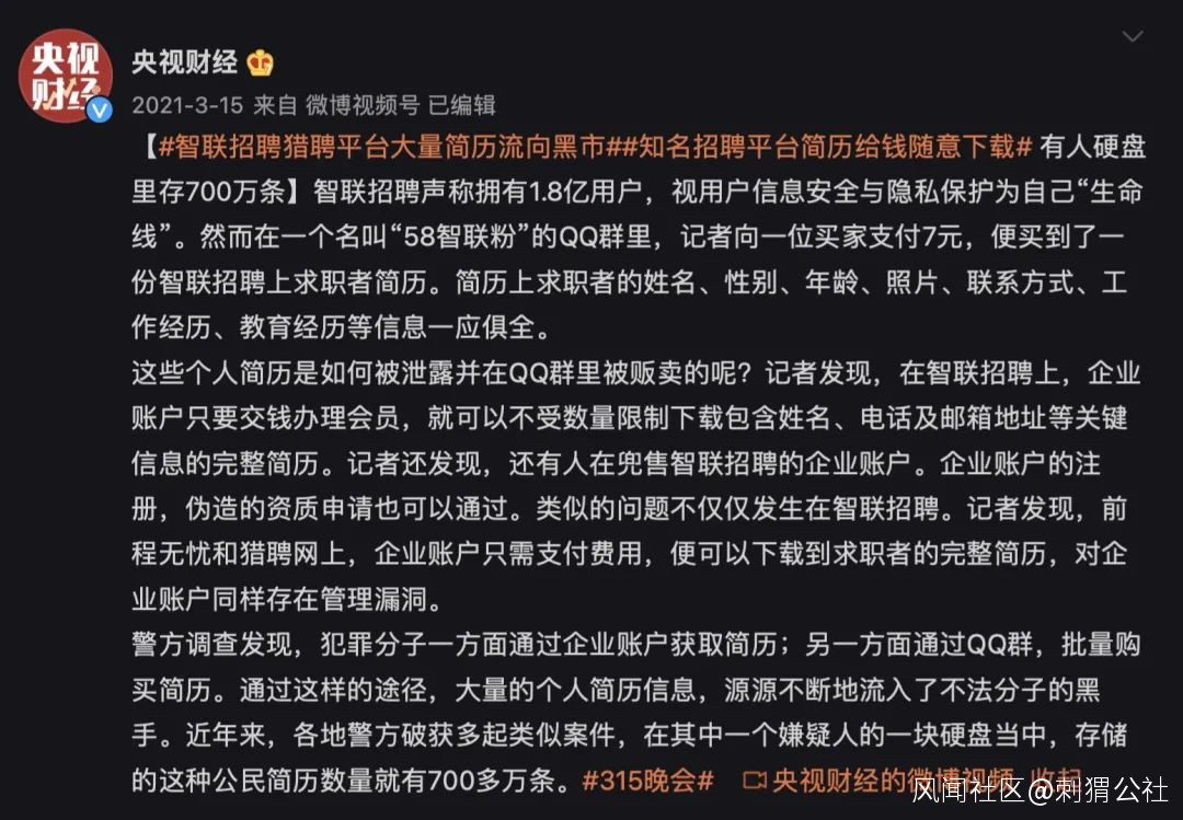 從時間上看,在2013年的3·15·晚會上,“安卓手機軟件盜取用户信息”“郵件用户資料被企業收集”等問題集中爆發。這標誌着個人信息安全的戰場大幅擴張,從過去的短信、電話輻射到互聯網及移動端。此後,3·15晚會關注互聯網信息安全領域成為了一種常態。