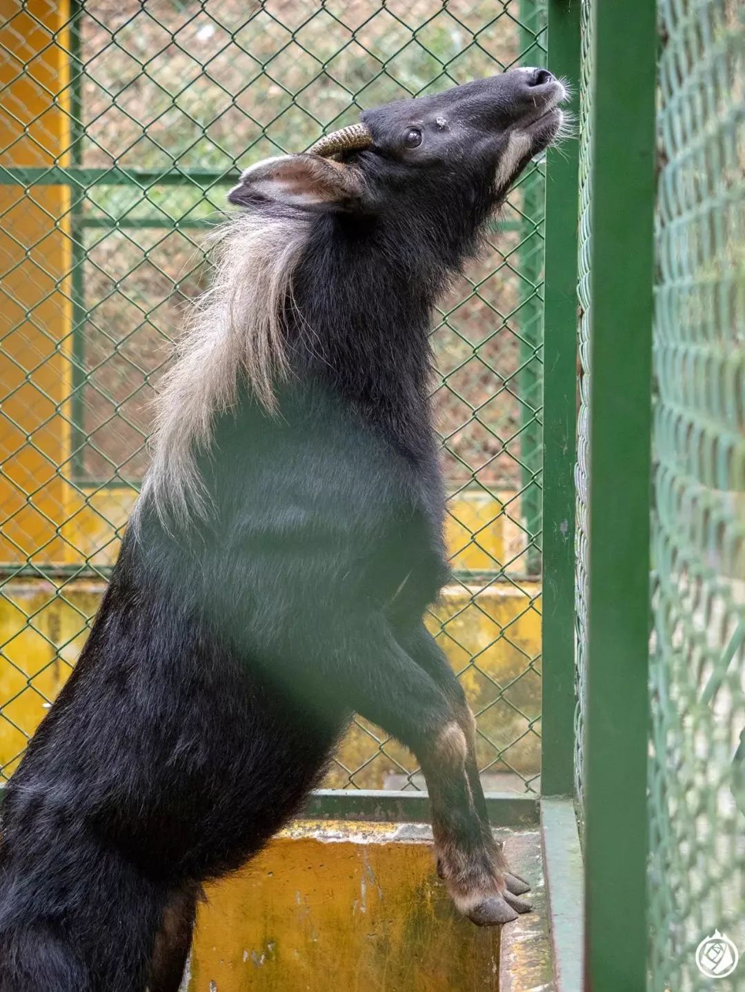 江蘇淹城野生動物世界,在籠舍裏垂直跳躍上牆的鬣羚 圖片來源:網絡