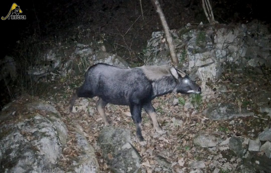 中華鬣羚活動隱秘,性情羞怯,通常都是單獨行動。我在六盤山的紅外數據裏看到過三隻一起活動的視頻,但能明顯看出來是母親帶着小崽。