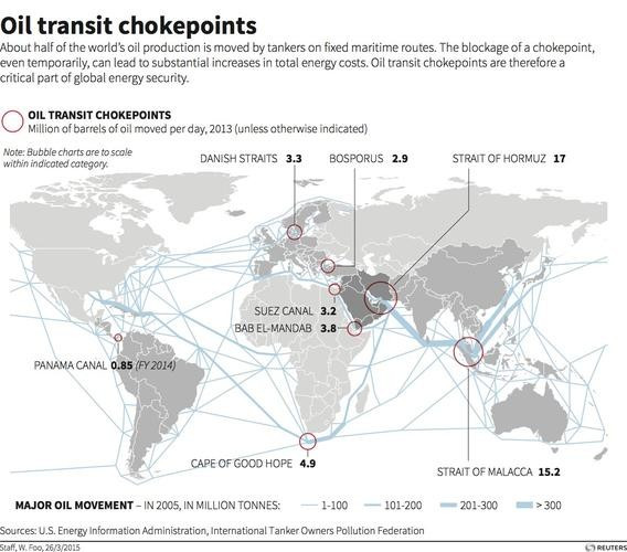 ▲全球石油運輸通道