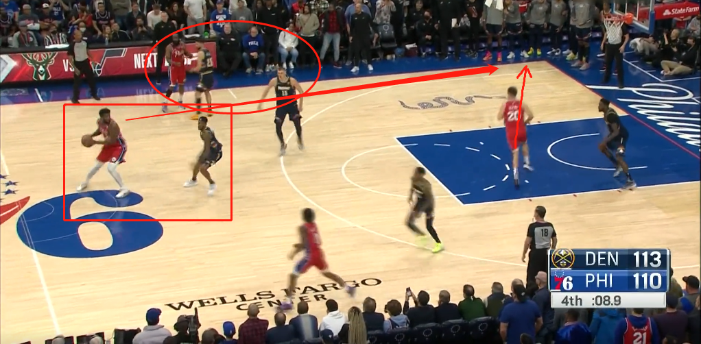 答案不言自明,費城這一攻不能説有問題,但關鍵三分給一個角色球員總感覺哪裏不對。