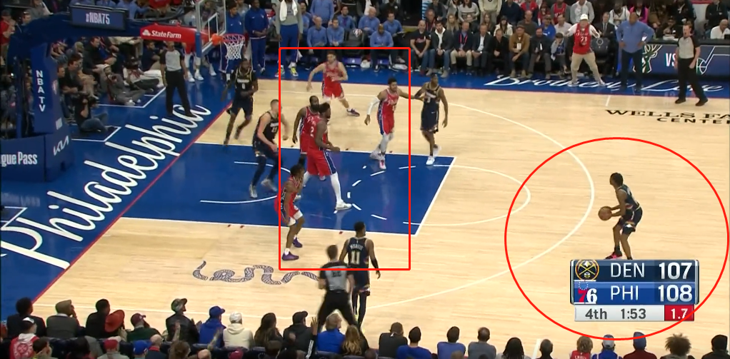費城第四節讓尼昂打了近10分鐘,塞布爾幾乎被棄用也是為了空間,因為只要塞布爾在場,掘金就總是可以漏掉他。