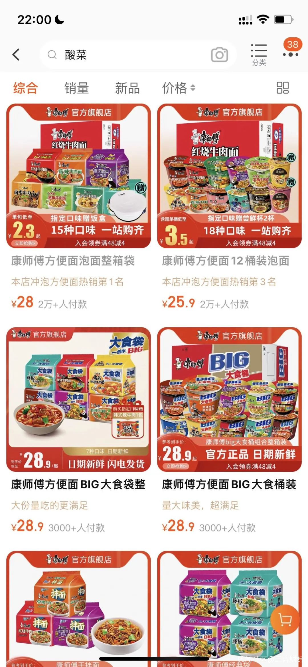 在康師傅淘寶官方旗艦店,雖然能搜到老壇酸菜產品,但均顯示無貨。