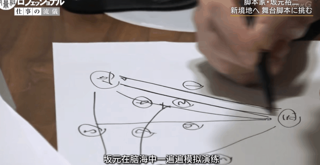 劇的編劇坂元裕二有一個這樣的習慣,用自己的方式在紙上一遍遍地模擬和思考人物的性格、對話,對話過程中人物會產生什麼念頭,他們的念頭又會如何左右對方的行動。