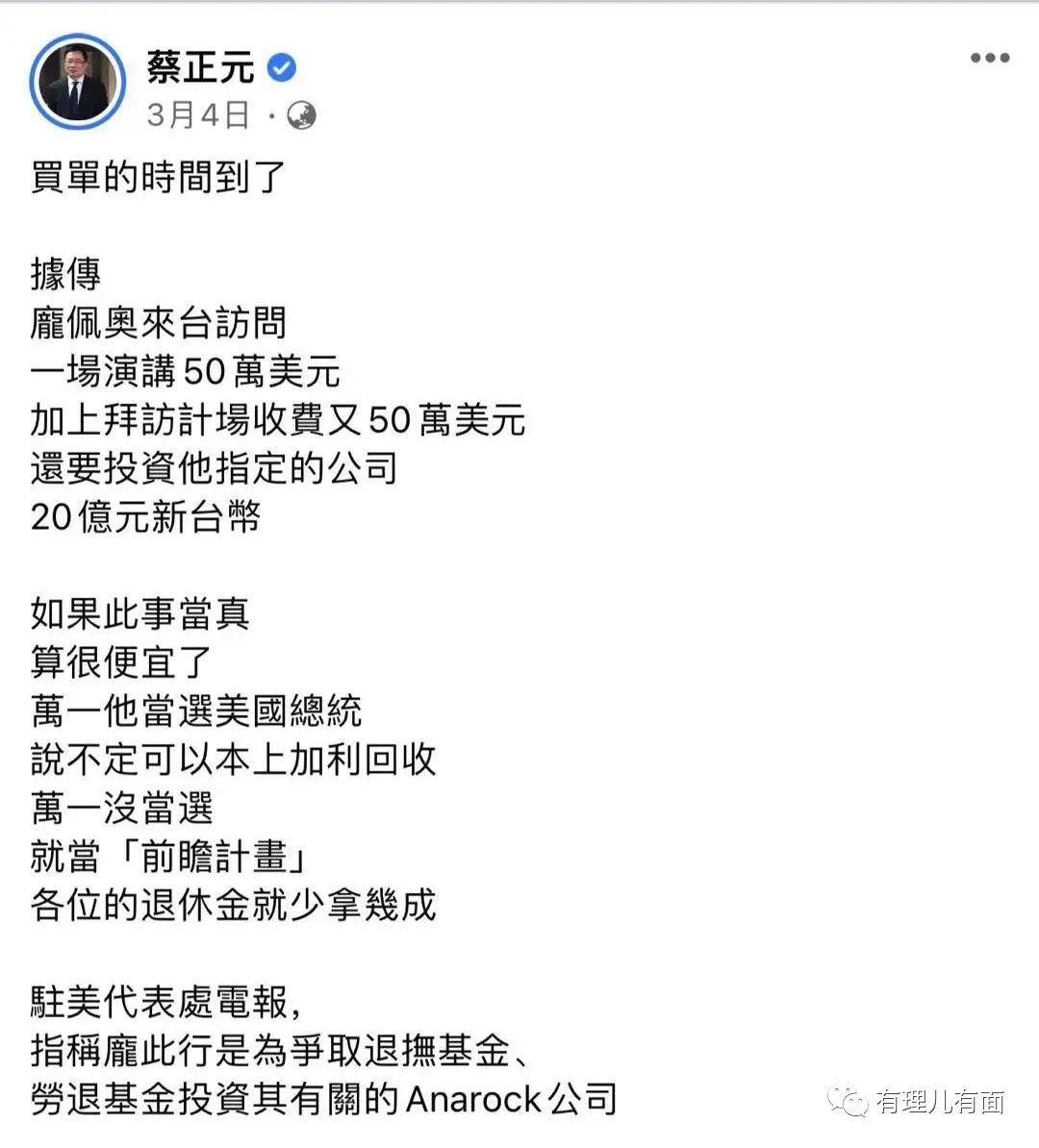 緊接着,民進黨又搬來了一個願意收錢説胡話的大“救兵”——美國前國務卿蓬佩奧。