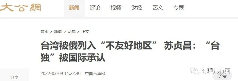 誰能想到,民進黨仗着台灣網民不懂俄語,公然做着指鹿為馬的行為。台當局行政機構負責人蘇貞昌藉機炒作,稱這代表俄羅斯承認台灣是“國家”,造謠這是俄羅斯間接承認“一中一台”的證明。