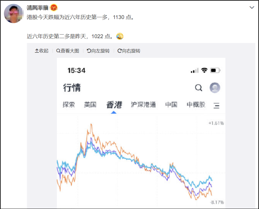港股今天跌幅為近六年曆史第一多。