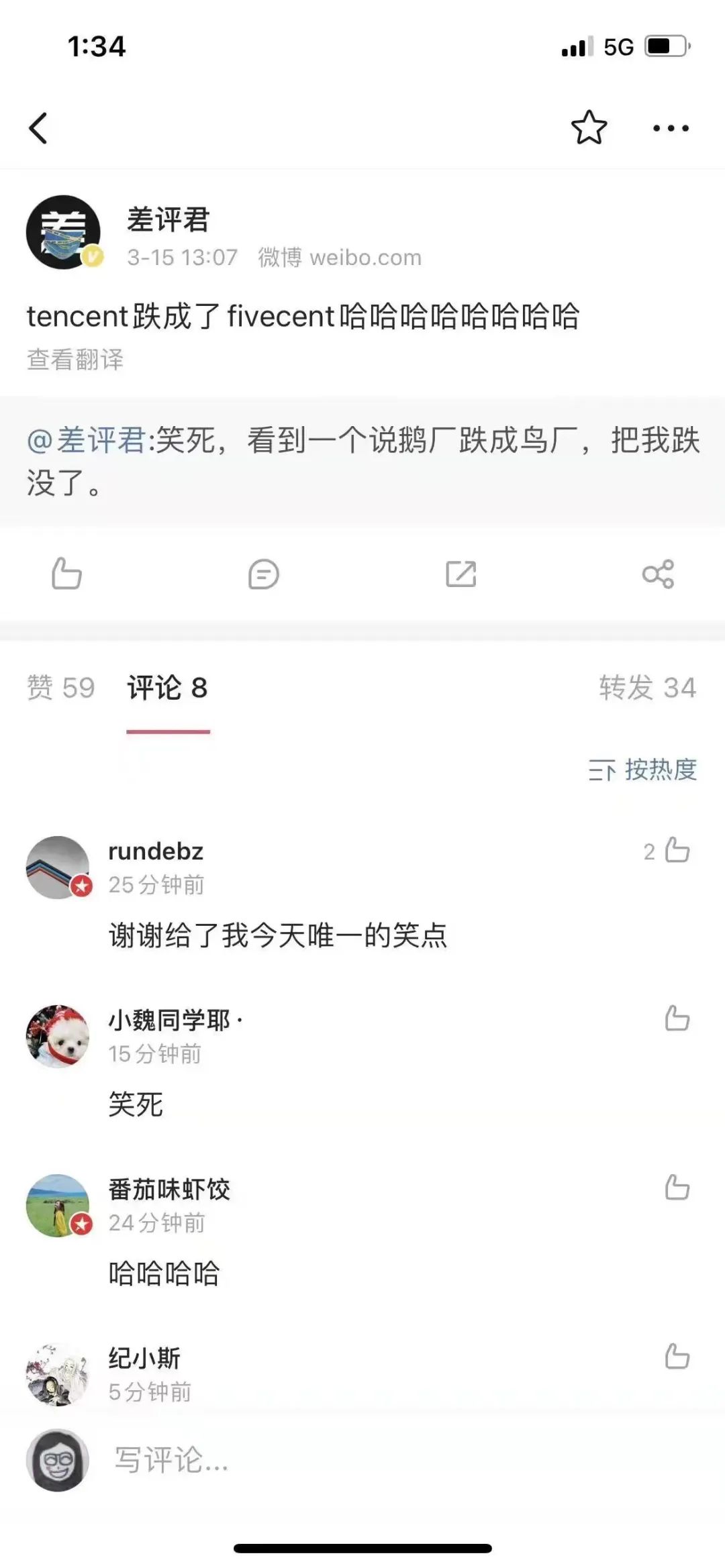 Tencent腰斬以後,變成Fivecent了。