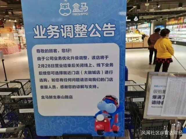 同時,位於成都南三環天府長城小區附近的盒馬鮮生超市,也掛出了閉店消息,同樣有此現象的還有廣州的門店。