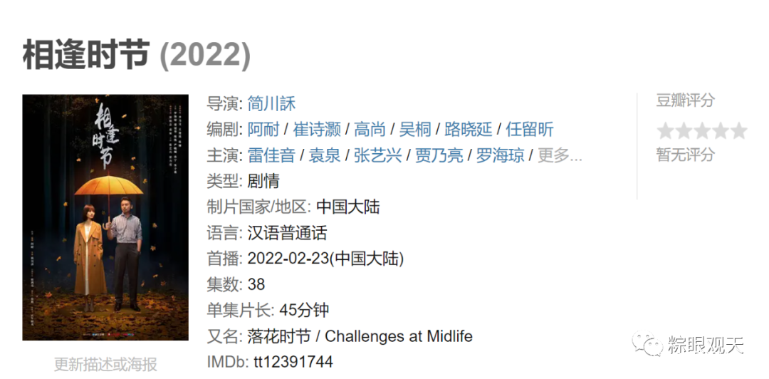 正午陽光的新劇《相逢時節》已經收官。直至今日,豆瓣上《相逢時節》竟然還未開分。這在正午陽光的劇中不僅“絕無僅有”,在整個電視劇市場中也是極為罕見。