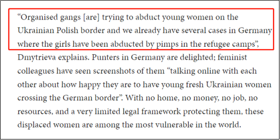 事實也的確如此,發生強姦和拐賣烏克蘭女性難民的事情不光是波蘭有,境內有烏克蘭難民的其他國家也普遍存在。