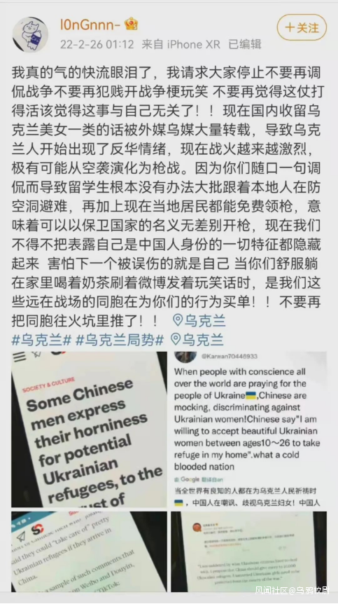 一個三無小賬號在微博上發佈了一篇小作文,細數中國人在烏克蘭事件中的幾大罪狀,然後就被轉爆了,甚至引起了有些主流媒體的轉發。