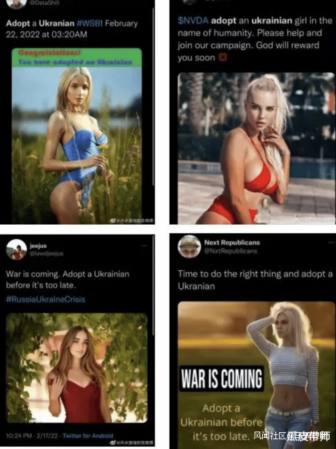 在外網上,烏克蘭女孩相關話題衝上過P站熱搜第一,谷歌對烏克蘭女孩的搜索量居高不下。更別提國外大量社交媒體賬户發佈“來自烏克蘭的新鮮肉類”、“妓院的價格最終會下跌”、“終於迎來了難民潮” 等不堪入耳的言論。