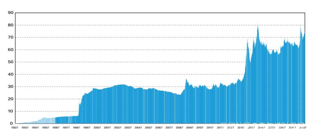 △1992.7—2020.7盧布兑美元匯率走勢圖