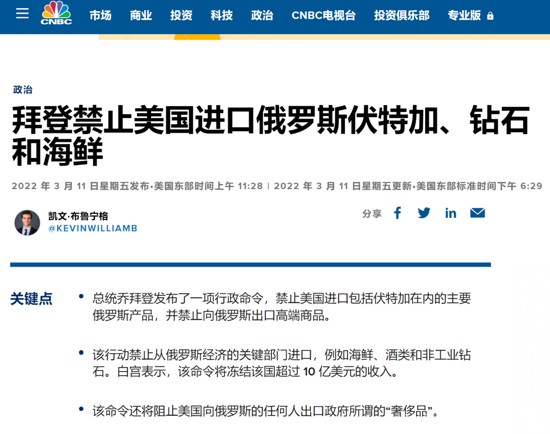 另一邊的美國也不傻,制裁俄羅斯,在禁止美國進口的第一批俄羅斯商品中就有伏特加。