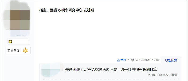 如今成員超10.8萬,同時也是豆瓣最大的收視率相關小組“收視率研究中心”,其創始成員也是湖南衞視貼吧的核心成員。據他們在組裏討論的內容,他們在貼吧相識,在微博、QQ羣等多個渠道輾轉,一直活躍至今,其組名也與彼時他們組建的QQ羣同名。在貼吧裏整理數據並製表的用户,偶爾也會被他們“盯上”。