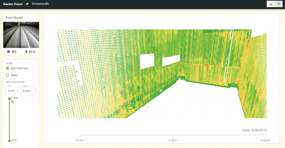Gecko 的成果揭示了大量需要短期維修的關鍵區域,問題解決後鍋爐得以重新運轉,“Gecko Vision 地圖可以定義明確的工作範圍」,高級工程師説。