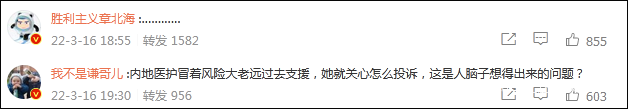 內地網友:內地醫護冒着風險大老遠過去支援,“她就關心怎麼投訴?”