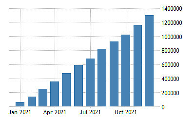 烏克蘭2021年的財政預算收入變化,單位:格里夫納
