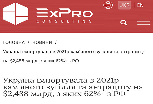 根據烏克蘭海關總署發佈的資料顯示,儘管煤炭資源豐富,但烏克蘭還是在2021年進口了1950萬噸、價值24.88億美元的煤炭,約佔全年消耗量的70%。