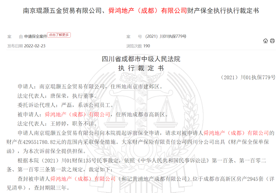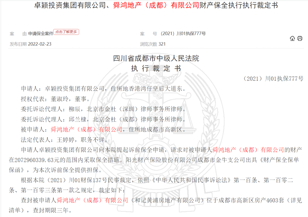 禹洲集團的關聯公司,申請查封禹洲集團的項目。