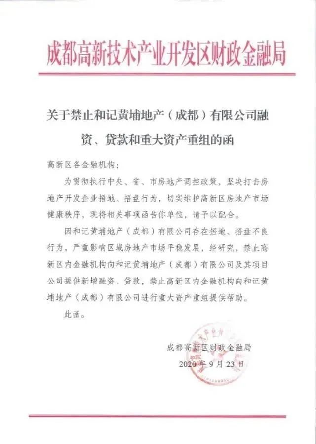 交易公佈兩個月後,成都有關部門就有文件流出,稱因為李嘉誠旗下的公司在成都捂盤,禁止各大金融機構為其貸款融資。