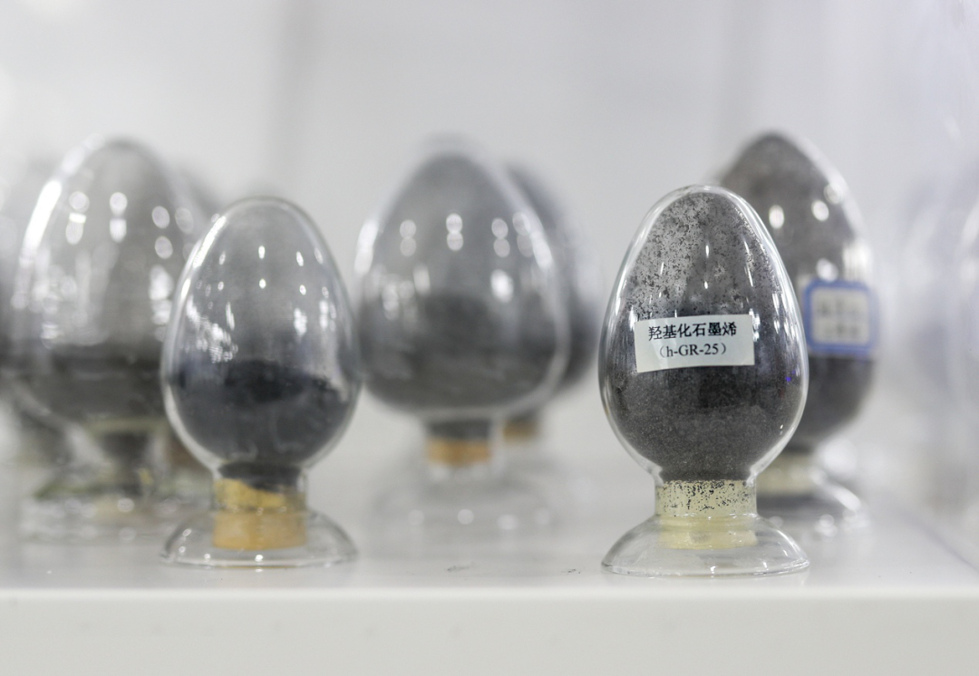 2022年2月17日,北京石墨烯技術研究院展廳內展示的石墨烯原料。圖|視覺中國