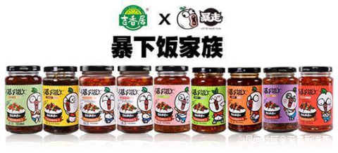 與此同時,面對品牌影響力度不夠的問題,傳統泡菜也玩起了新營銷策略。吉香居不僅和深受年輕人喜愛的漫威合作推出英雄牛肉醬系列,還與暴走漫畫合作,打造了 " 暴下飯 " 網紅 IP 產品。