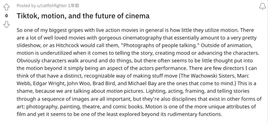 不過,這位用户卻不認為短視頻會為電影帶來新的可能性,頂多能啓發一些拍MV的靈感,畢竟“抽象”的運動本身並沒有什麼意義。