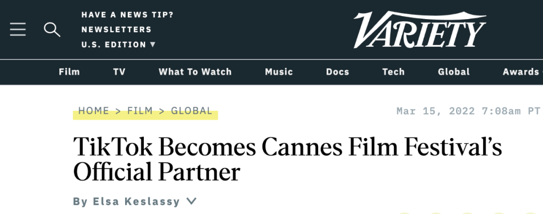 據Variety 3月15日報道,戛納電影節組委會宣佈與TikTok進行官方合作,為TikTok的用户提供後台、紅毯以及來自世界各地的影人的獨家採訪內容。不僅如此,TikTok還將舉辦“首屆TikTok短片競賽”,評審團由知名導演擔任主席,將在戛納電影節期間頒發三個相關獎項,戛納總監福茂也將出席頒獎典禮。