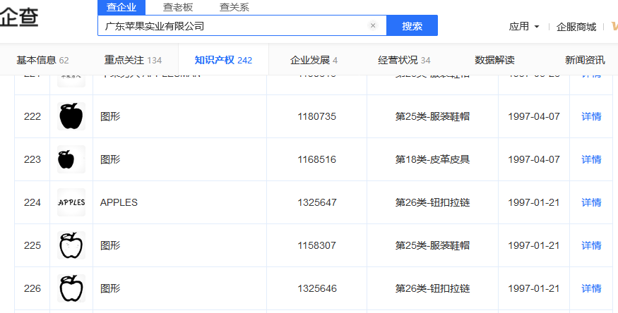 這回提出異議的是廣東實業有限公司。這u加公司主要生產皮具、成衣等,創立於1992年,最早在1997年就註冊了“蘋果”商標。