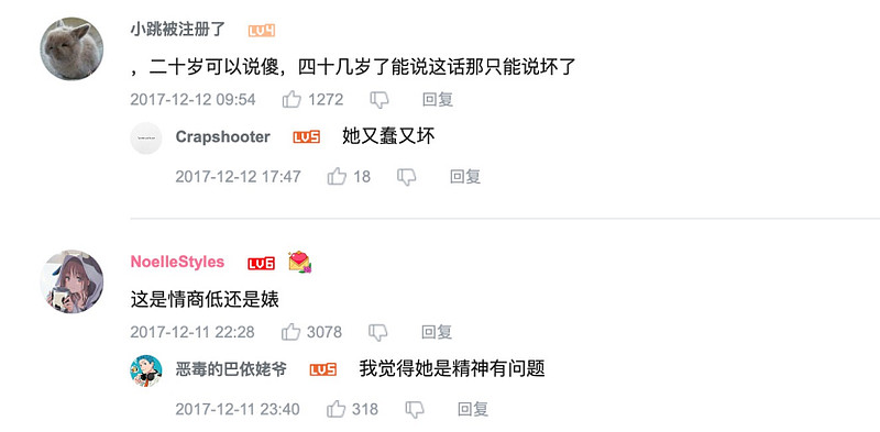 而此時袁立的形象比較負面,所以視頻下面的評論,以譴責袁立為主,斯琴高娃此時的形象,是單純的袁立發瘋行為的受害者。