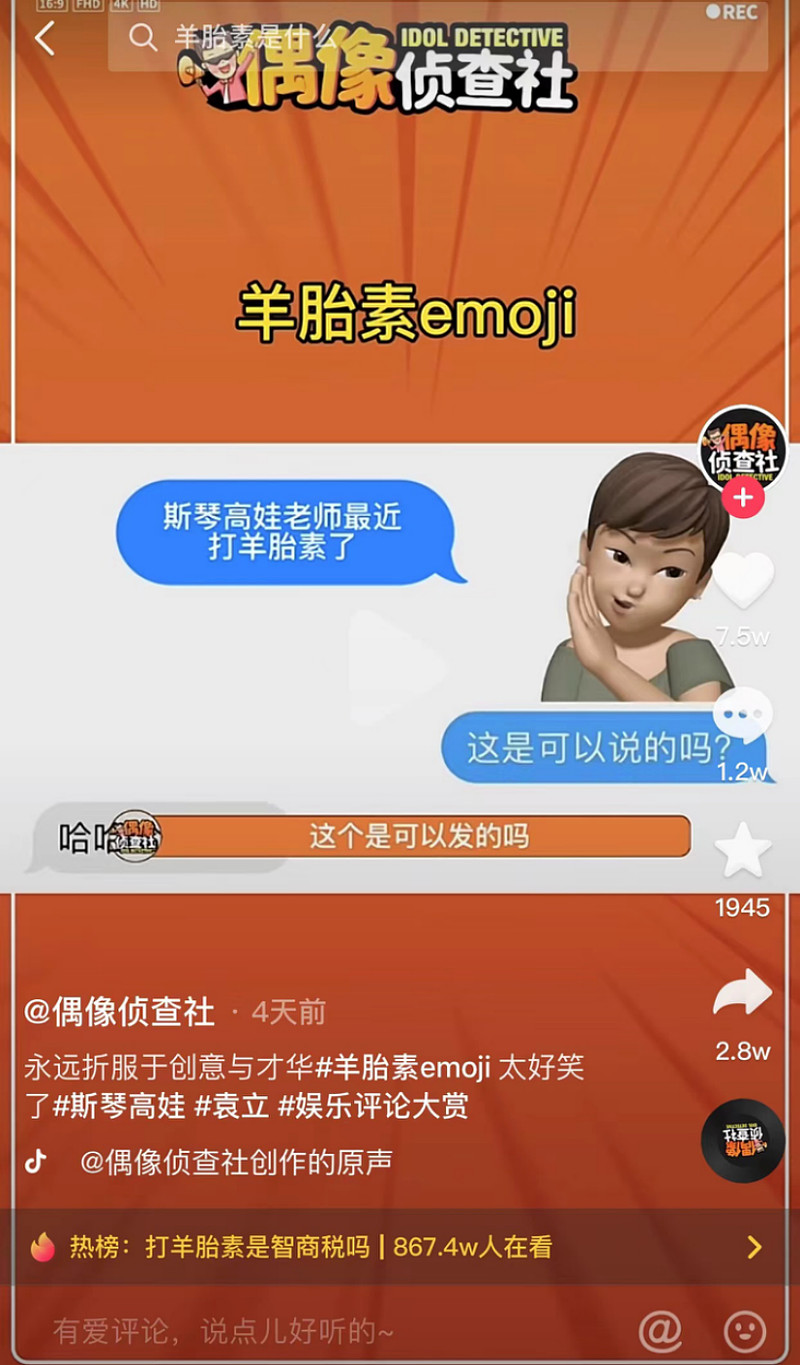 除開偶然因素外,羊胎素梗的一次次翻新,也與傳播媒介及受眾羣體的變化有關。短視頻的興起催生了一批新的用户與受眾,誕生了新的需求,也讓更多玩梗的方式被呈現了出來。
