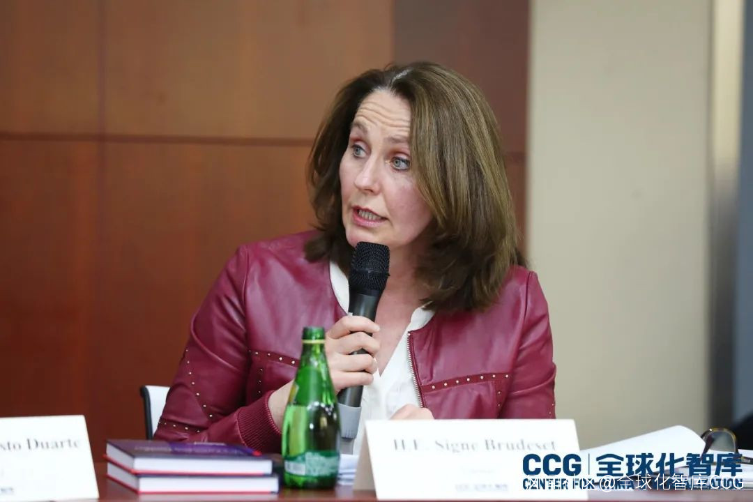 挪威駐華大使白思娜**(H.E. Signe Brudeset)**認為,新冠肺炎疫情雖然為面對面交流設置了障礙,並削弱了媒體傳播的能力,但全球化依然存在,外交官與智庫作為溝通的“橋樑”也變得更加重要。面對國際衝突,我們要以冷靜、誠實和正直的態度採用和平解決的態度和有效機制應對國際矛盾。
