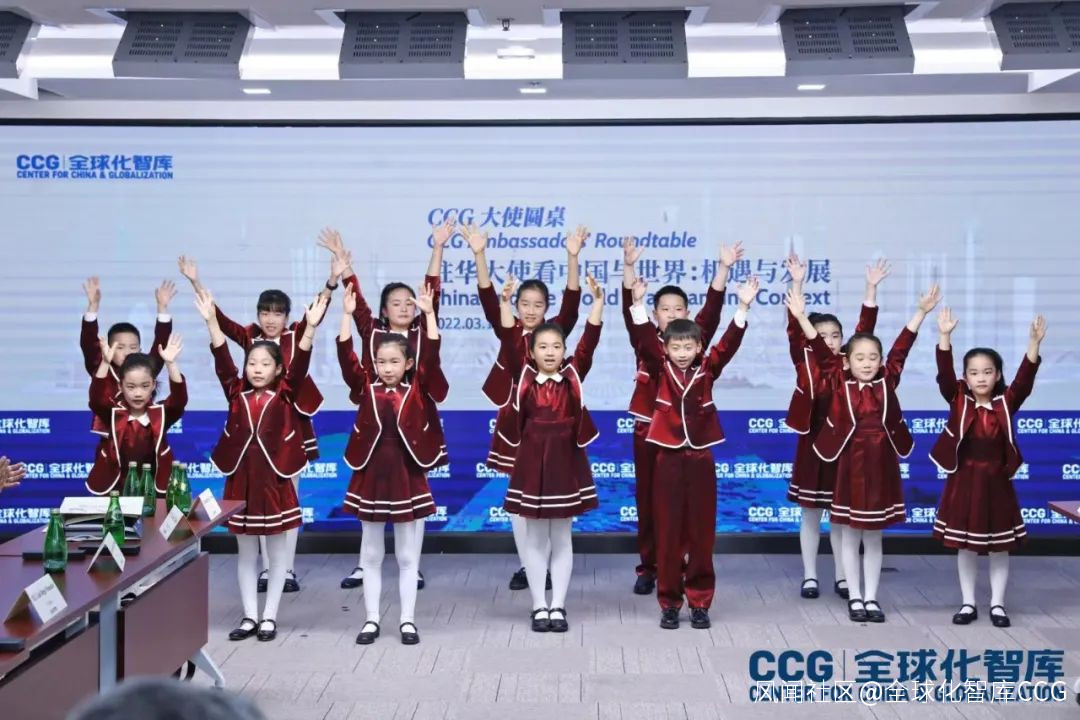 參與此次會議的還有突尼斯駐華臨時代辦Mr. Mustapha Abid、埃及駐華大使館一秘Mr. Amr Abuahmed、俄羅斯大使館二秘Mr. Kosmachev Alexey、瑞士駐華大使館參贊兼政治處副處長Mr. Andrea Anastasi、墨西哥駐華大使館國際合作處處長Mr. Ruben Beltran、葡萄牙駐華大使館副館長Mr. João Martins de Carvalho、埃及駐華大使館參贊Mr. Mazen Flaifl、哥倫比亞駐華大使館參贊Mr. Óscar Gasca、芬蘭大使館商務參贊Ms. Mari Korhonen、歐盟駐華代表團政治處一秘Ms Aire KorK、泰國駐華大使館公使銜參贊Mrs. Natthira Krasaesarn、丹麥大使館參贊Ms. Henriette Kristensen、歐盟駐華代表Mr. Thomas Langelaar、阿塞拜疆駐華大使館三秘Mr. Hasan Mammadov、美國大使館農業部Mr. Garrett McDonald,巴西駐華大使館公使銜參贊Mr. Celso de Tarso Pereiradunhao、格魯吉亞駐華公使銜參贊Mr. David Pipinashvili、馬來西亞駐華大使館參贊Mr. Riaz Abdul Razk、意大利駐華大使館第一參贊Ms. Sara Rezoagli、坦桑尼亞駐華大使館公使Dr. Miraji Ukuti Ussi、中華人民共和國外交部歐洲司參贊孫明晰先生、中華人民共和國外交部歐洲事務司副處長孫娟女士、日本駐華大使館參贊Mr. Fuji Taro、中國太平洋經濟合作委員會(CNCPEC)秘書處主任羅程先生等。大使圓桌之後,CCG邀請來自北京維童之友合唱團(FVBC)的小演員們為大使們帶來了美妙的歌聲和祝福,共同祝願世界和平。