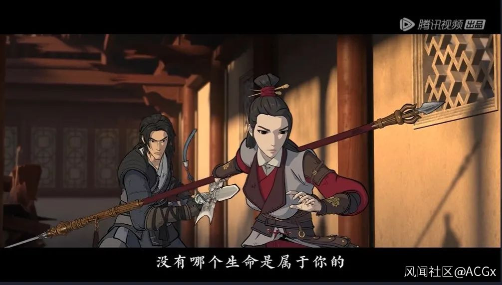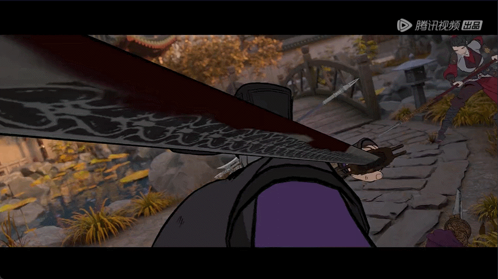 在《枕刀歌》和《風靈玉秀》這兩部在表現手法上更貼近傳統武俠影視片的動畫裏,快節奏的打戲是各自的賣點。無論是面對任何時代的觀眾,流暢灑脱的動作場面一直都是影視作品的大看點。精彩紛呈的武打設計、特效不僅豐富了視聽表現,另一個重要作用則是為了貼合人物設定和故事主題。實際上,在如今網絡內容的審核力度下,武俠動畫的動作戲暴力場面已經大大削弱。