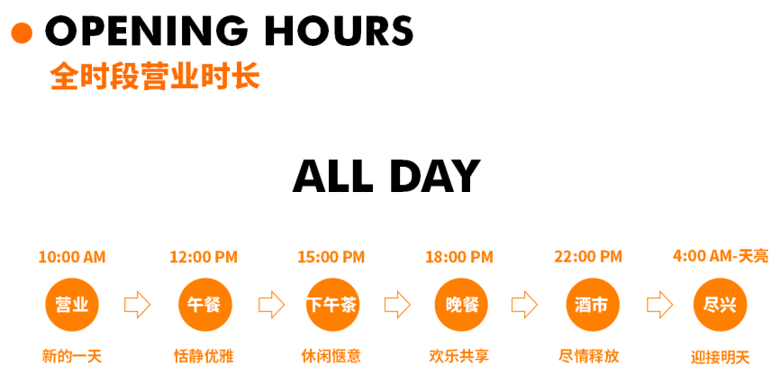 餐廳從早上11點開始營業,凌晨3點才打烊,連續營業時間達到16個小時,特殊節假日營業時間會延長,滿足消費者從午餐,一直到凌晨酒市等多個場景的消費需求。